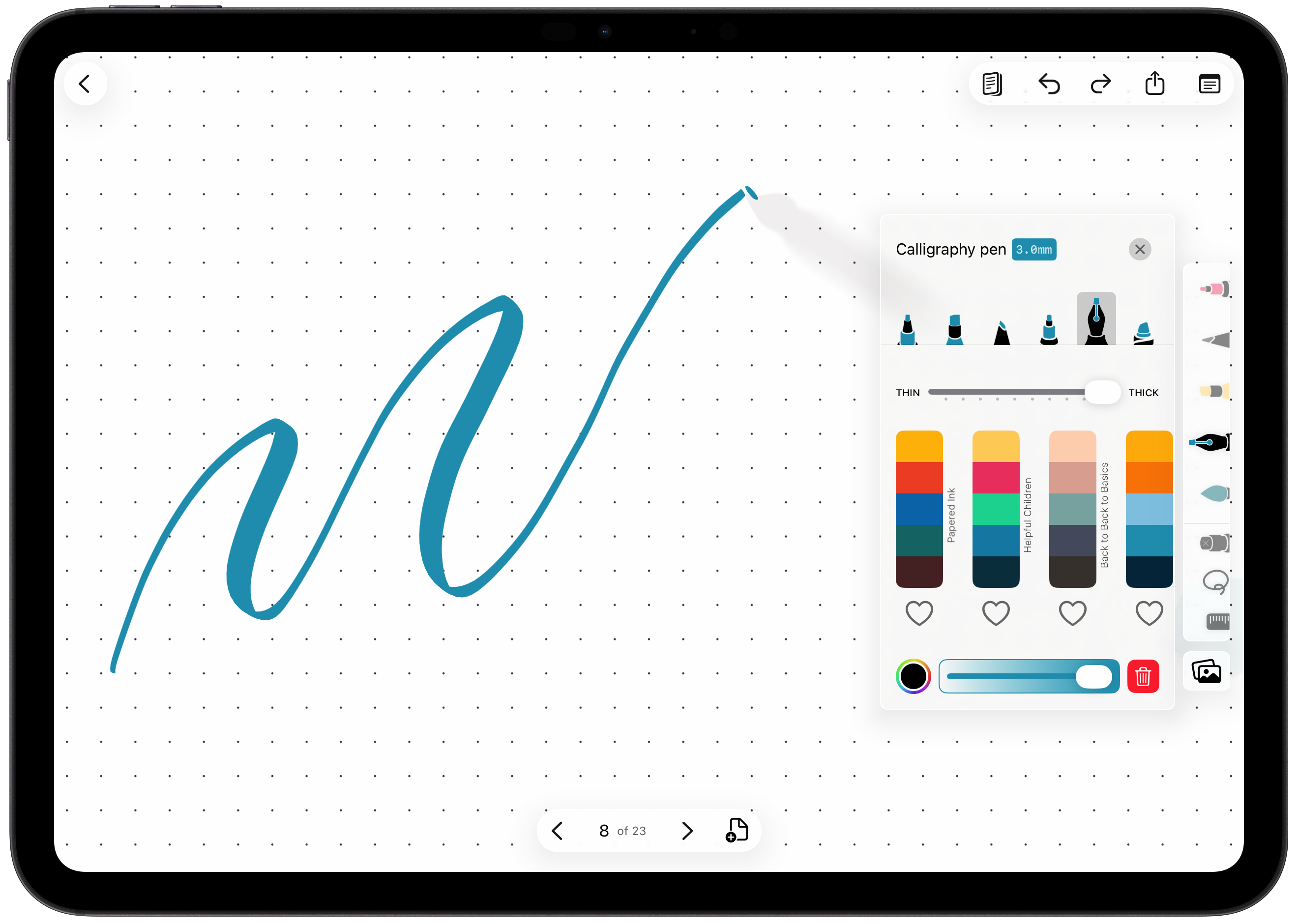 The new writing canvas scrolls beyond the edge of the page, keeping your hand centered and letting you fill your pages all the way to the very top and bottom.