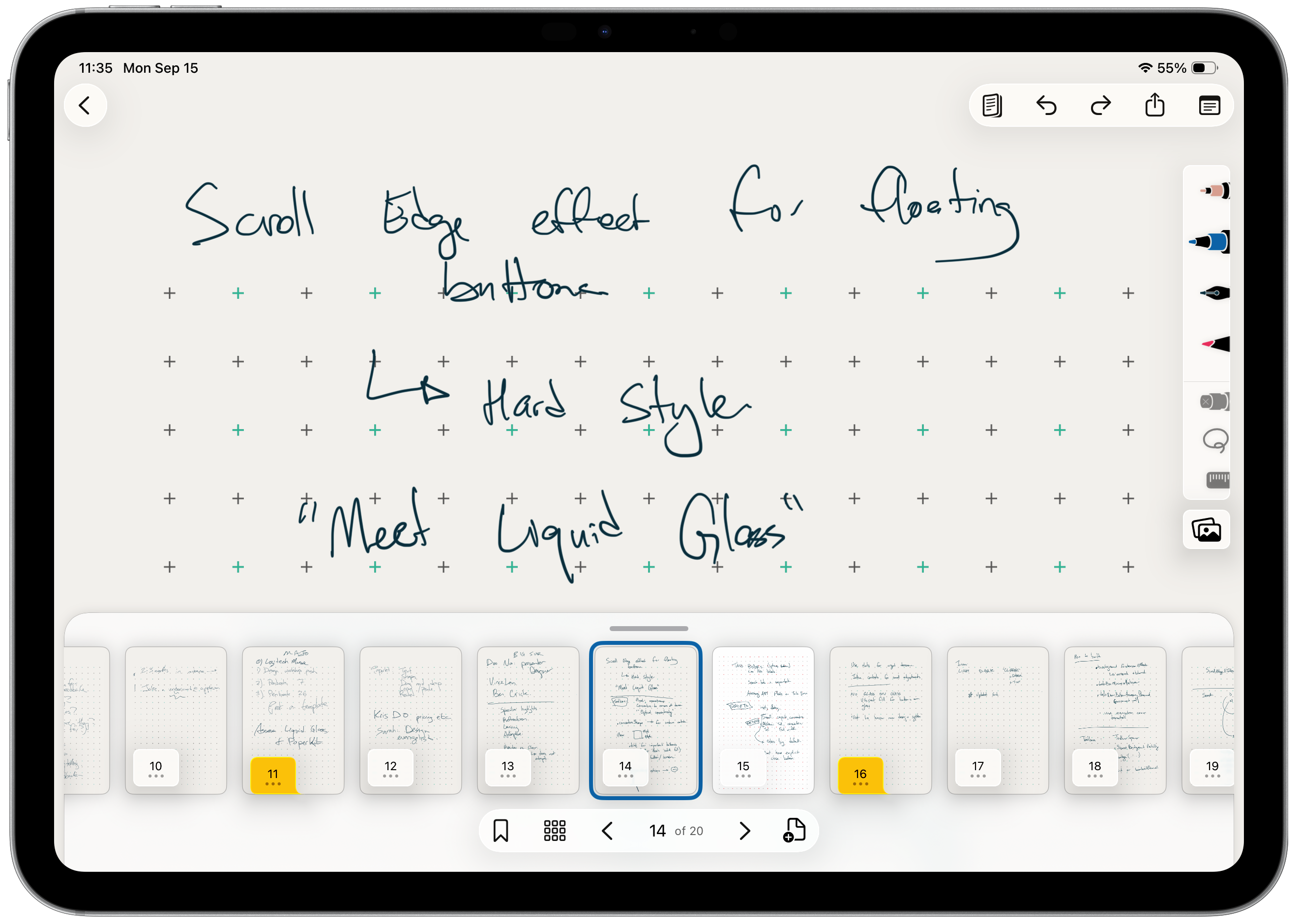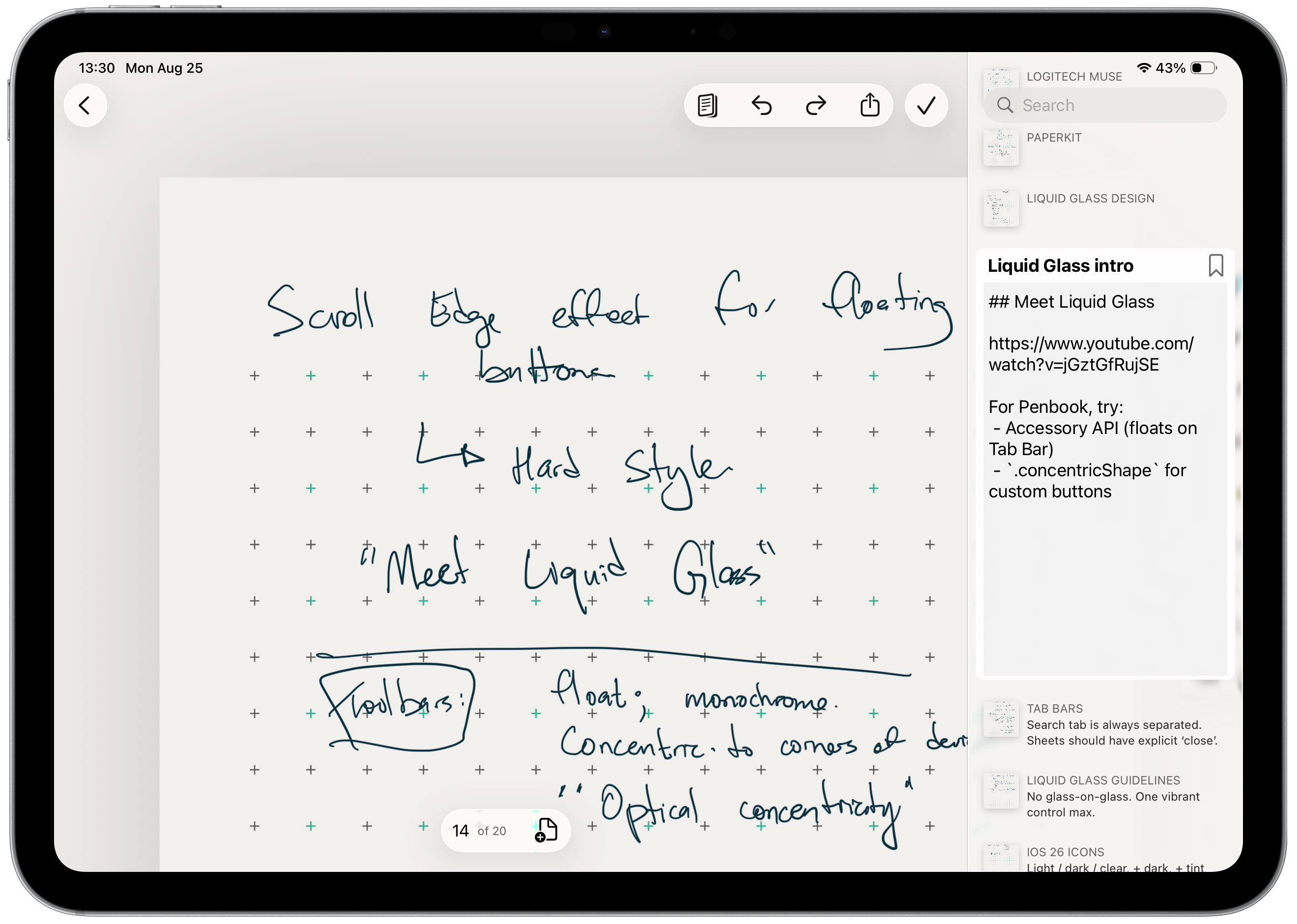 The app’s toolbars and navigation are enhanced by Liquid Glass, so your notes stay in focus while the buttons for writing tools and page controls remain accessible.